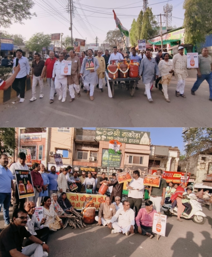 गैस सिलेंडर की किल्लत के विरोध में कांग्रेस का प्रदर्शन,ठेले पर टंकियां रख निकाली रैली