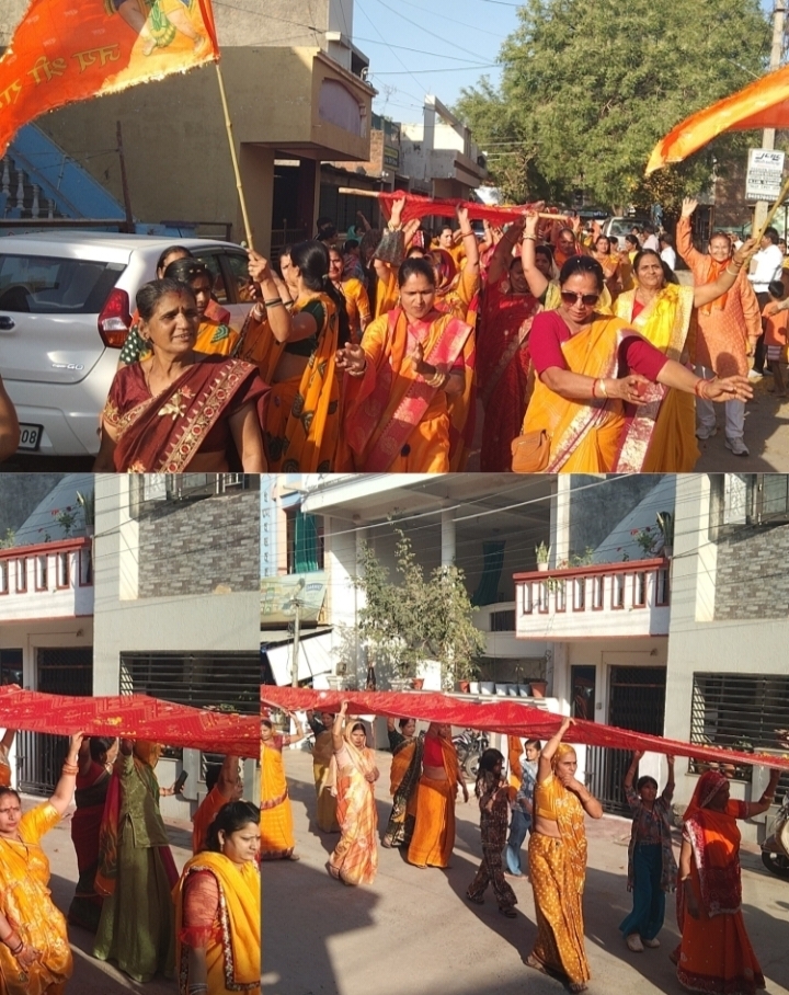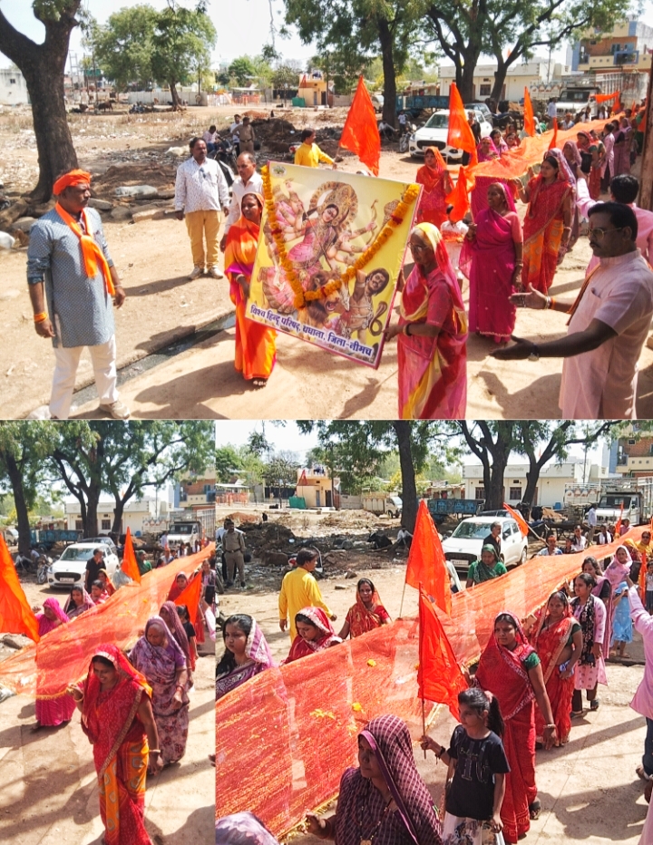 विहिप बजरंग दल ने निकाली 71 फीट चुनर यात्रा,नगर में गूंजे माता के जयकारे