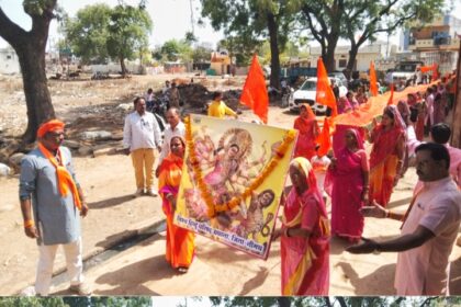 विहिप बजरंग दल ने निकाली 71 फीट चुनर यात्रा,नगर में गूंजे माता के जयकारे